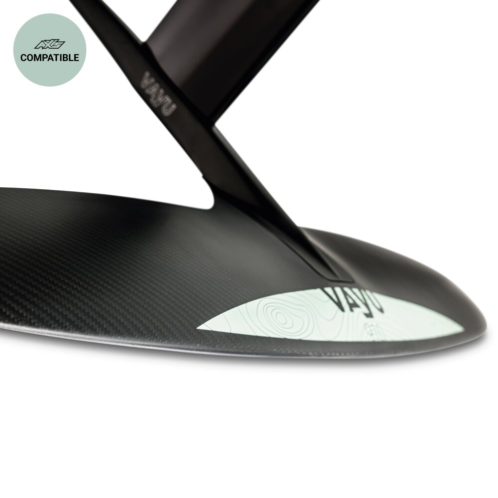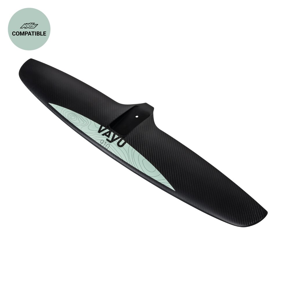 The 910 carbon wing can be ridden with the tip off the water and you won’t even notice it. Incredibly smooth and well behaved for advanced levels and medium/stronger conditions. The 910 can be paired with a 500 rear wing for most control and stability, a 440 rear wing control and stability (all levels) or a 400 rear wing for a looser feel and carving turns while maintaining good control (Intermediate.) Use the 390 rear wing for Wing and Surf with good turning control and additional glide or the 370 rear wing for a loose feel and fast turning with less stability (intermediate.)